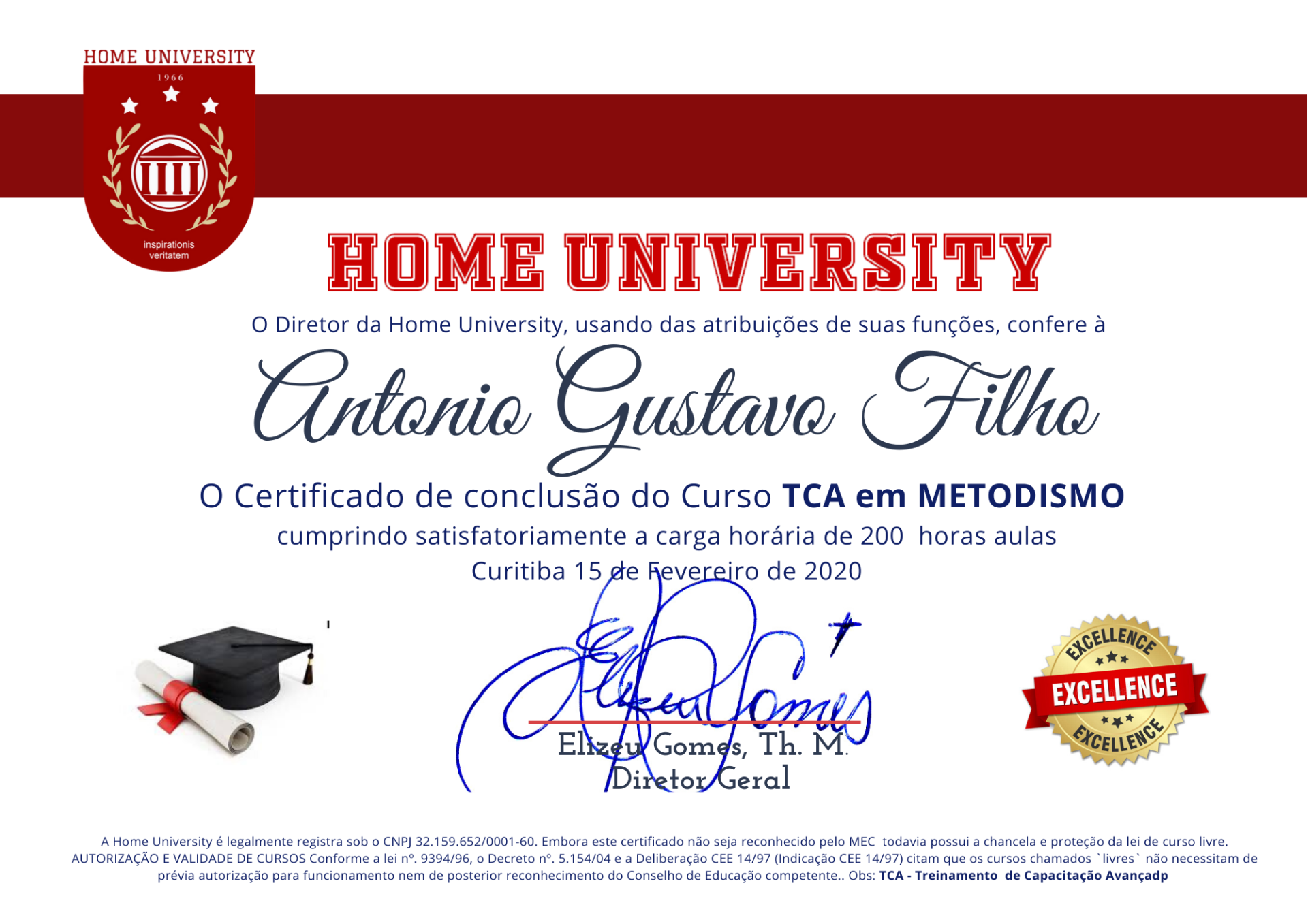 A HU oferece o Certificado de TCA em Metodismo. É um curso intensivo. Um curso EAD com a mesma emoção do presencial. Também você receberá o material digital, com 20 vídeos aulas,mais vídeos de pesquisas, dezenas de artigos em e-book PDF, revistas, áudio aulas no digital e muito mais . Um aprendizado dinâmico e rico de conteúdo. TCA em Metodismo Wesleyano. Nós já estamos no futuro e você?
